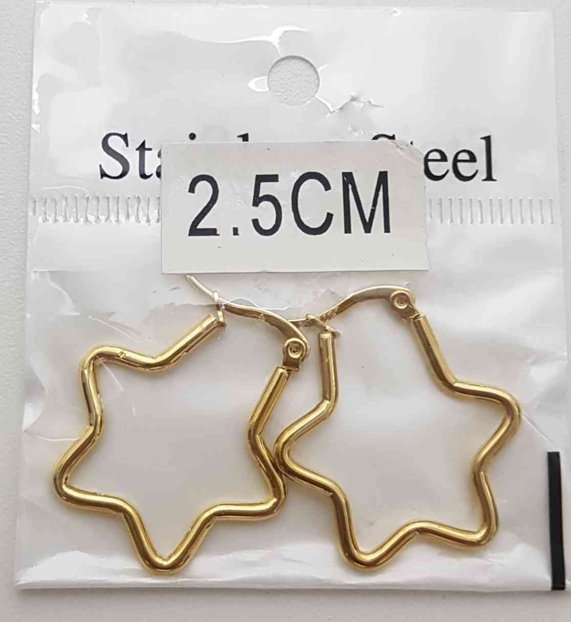 SKU: Cod.JYM-1752D-3,2.5CM aros estrellas de acero dorada ESTRELLA Categorías: , , ,